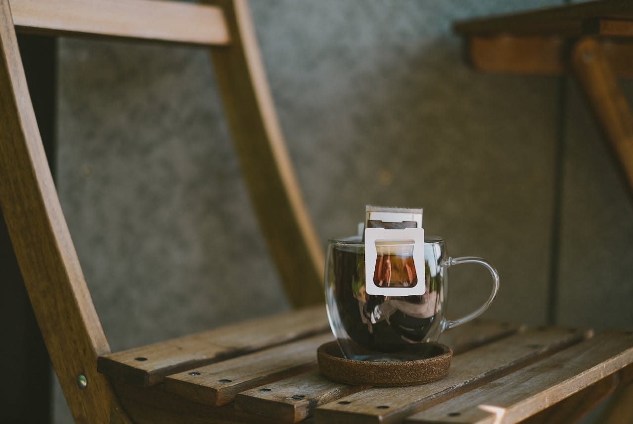 浸泡期間,可以在中間點(約 2 分鐘時)輕輕提起咖啡包上下攪動幾次,這個動作能讓咖啡粉周圍已飽和的水被置換,提升萃取均勻度。